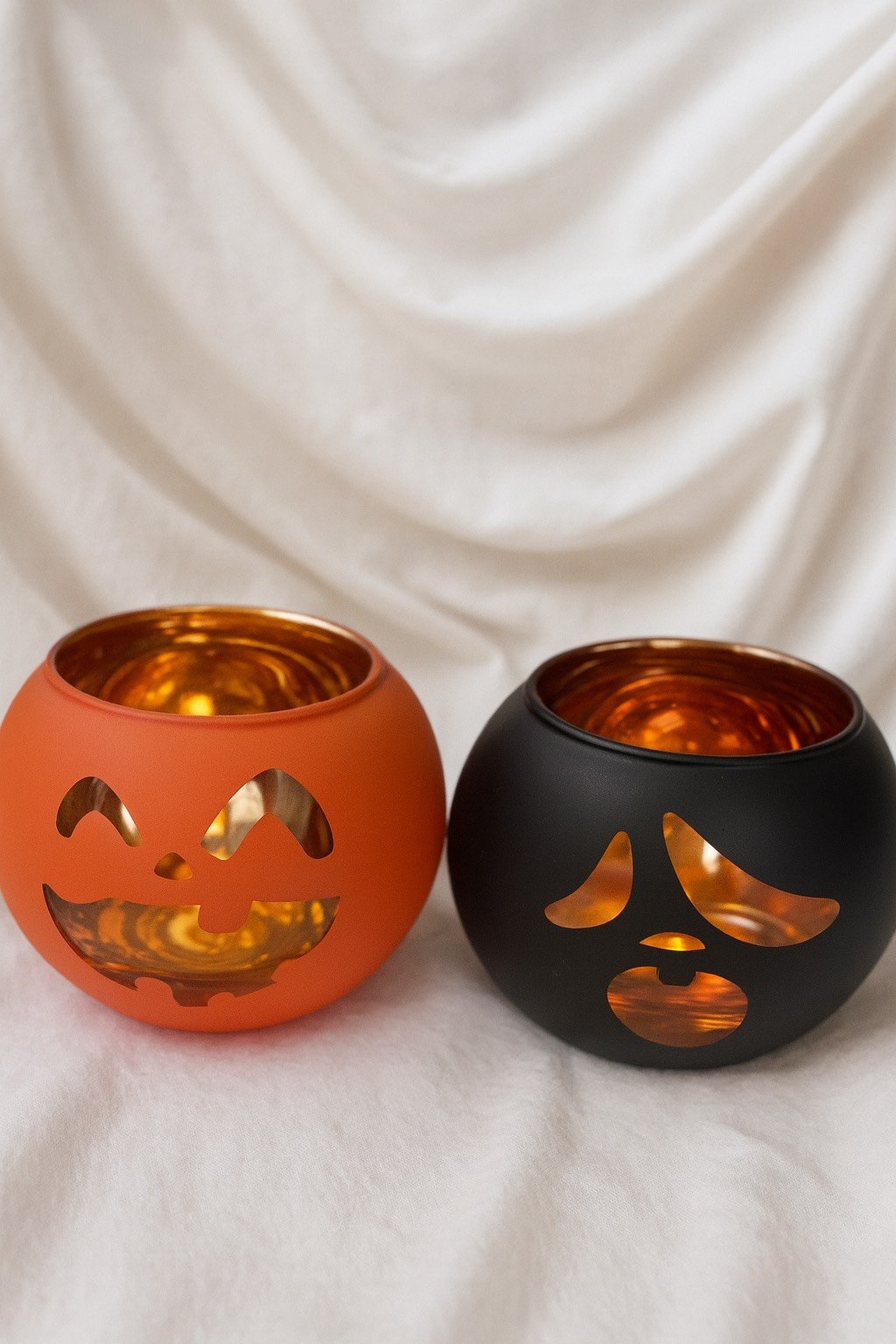 Jack-o’-Glow Tealight Holder Set (Black and Orange)